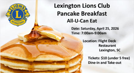 Lexington Lions Pancake Breakfast - Saturday, April 25, 2026 @ Flight Deck Restaurant